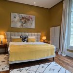 The room exudes joie de vivre and character. The warm, sunny wall brings light and energy into the room and provides the perfect backdrop for the mix of old and new, creating an inviting, individual, and stylish atmosphere. A room to arrive in, feel at home in, and be inspired by.